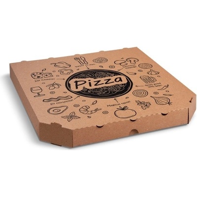 Krabice na pizzu mikrovlnitá lepenka H4 kraft s potiskem 33 x 33 x 4 cm