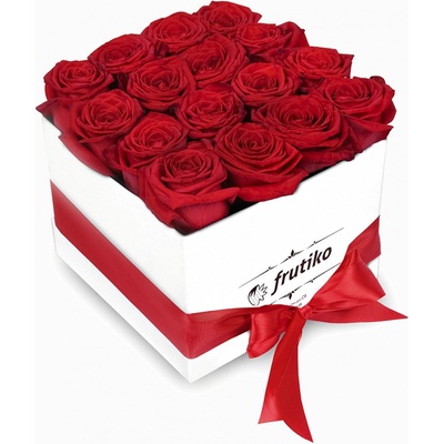 Luxusní krabice rudých růží Není žádným tajemstvím, že červená růže symbolizuje opravdovou lásku a jako taková potěší srdce každé ženy. Červená růže je klasickým symbolem vášně a citů, a proto je to tak báječný způsob vyjádření citů. Frutiko dodává bílé krabice...