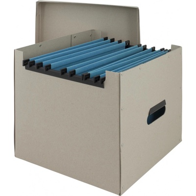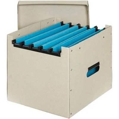 nýtovaná krabice z hladké lepenky vysoké pevnosti s víkem okraje pro zavěšení desek jsou zpevněny plastovou výztuhou vyztužené postranní otvory pro ruce rozměry 32,5 x 28,5 x 27...