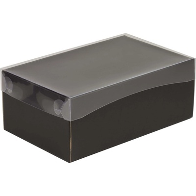 Bílá krabice s průhledným víkem a vložkou na 12ks muffinů.