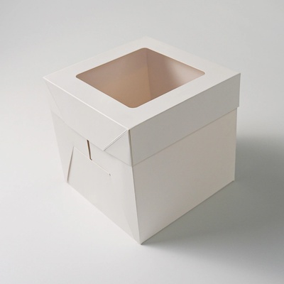 Bílá dortová krabice s průhledným víkem. Vhodná na Bento dort. Krabice je z vnitřní strany bílá. Rozměr: 18x18x18cm