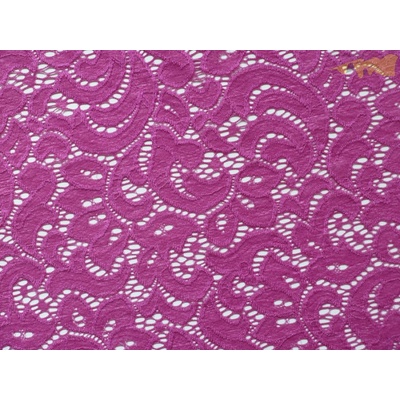 Tato fuchsiová elastická krajka je ideální pro zdobení spodního prádla, halenek, šatů a sukní. Její jemný květinový vzor dodá vašim výrobkům romantický a elegantní vzhled.