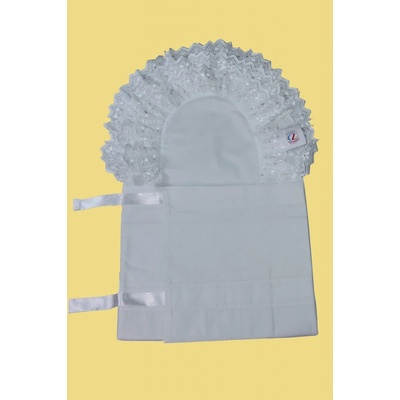 Kojenecká krajková zavinovačka je vyrobena ze 100% bavlny plátna, má dvě řady 8 cm krajky strojově řasené a zavazování ze saténových stuh. Je obdélníková -112x35 cm. Do této zavinovačky patří vložka obdélník 5707- nutno objednat.