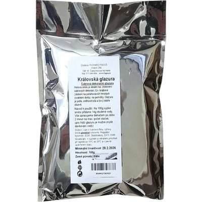 Královská glazura, vhodná na zdobení dortů nebo připevňování figurek. Královskou glazurou můžete připevňovat figurky z modelovacích hmot a marcipánu. Můžete jí plnit do cukrářských sáčků s řezanou trubičkou a zdobit tak nejlépe potahované dorty krajkovými vzory,...