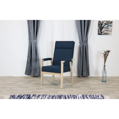 Křeslo pro seniory Jakub - potah tmavší šedá barva. Područky masivní buk, sedák tužší. Velký výběr potahových látek.