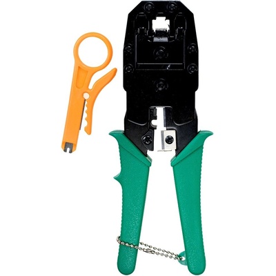 Krimpovací kleště pro upevňování konektorů RJ10,RJ11 a RJ12 na telefonní kabely, pro RJ45 na síťové kabely. Oranžová rukojeť Specifikace: určeno pro RJ45(8p8c), RJ12(6p6c),...
