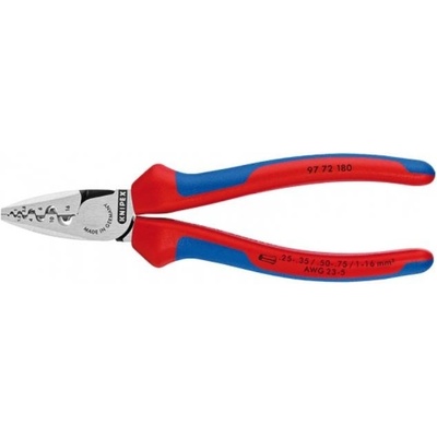 Lisovací kleště na koncové dutinky s vícesložkovými návleky 180 mm. Kapacita: 0,25-16,0 mm2. K lisování dutinek podle DIN 46228 část 1 + 4. Lisování do označených půlkulatých...