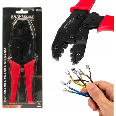 Univerzální krimpovací kleště na kabelové koncovky značky Kraft&Dele se symbolem KD10537. Nástroj je vyroben ze speciální oceli se zvýšenou odolností, rukojeť je potažena...
