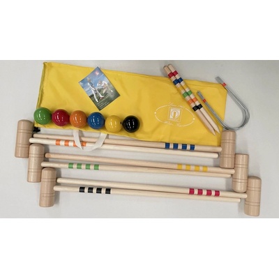 Velký kroket pro 6 hráčů. Obsahuje šest palic, deset branek, šest koulí a dva kolíky. Dřevěné doplňky jsou barevně rozlišené. Vše zabaleno ve velké tašce na zip. Hlavní vlastnosti: vyrobeno ve Francii z bukového dřeva