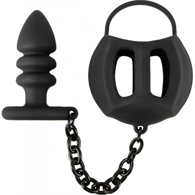 Black Velvets Ball Cage with Butt Plug - černý silikonový erekční kroužek s klecí na koule a análním kolíkem z kolekce Black Velvets. Vzrušující vybavení pro Váš penis, koule,...