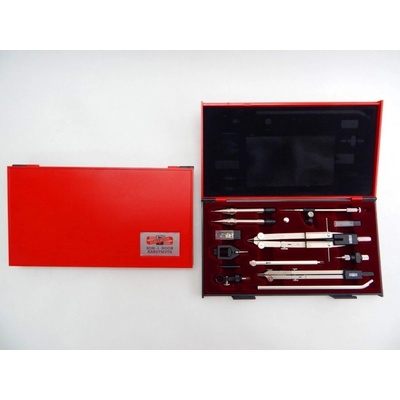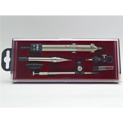 Tato luxusní sada je složena z kružidla rychlonastavitelného, kružidla s teleskopem, padacího nulátka pro trubičková pera, ramena prodlužovacího, tyče prodlužovací a běžcem,...
