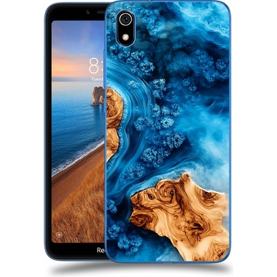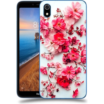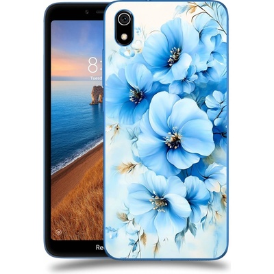 Lesklý obal, kryt, pouzdro Mobiwear Glossy na mobil Xiaomi Redmi 7A - GA40G Modré a béžové květy - ochrana zad i boků telefonu, potisk co se neošoupe, tenký design, parádní...