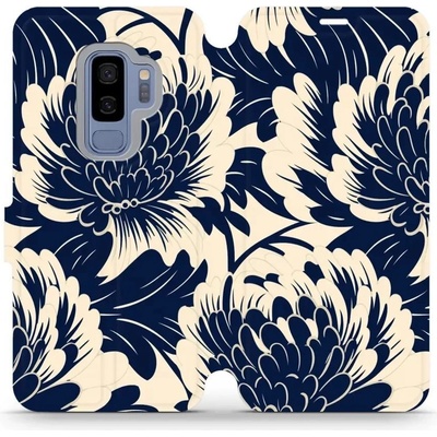 Knížkové pouzdro, obal, kryt Mobiwear na mobil Samsung Galaxy S9 Plus - VA40S Modré a béžové květy - ochrana celého telefonu, funkce stojánku, odolná TPU vanička, magnetické...