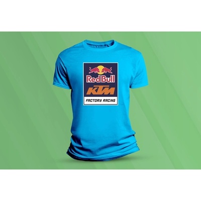 Pánské triko BACKPRINT Pánské modré triko s logem Red Bull KTM Racing Team na zádech. - Kolekce 2021 - Krátký rukáv - Rovný střih - Kulatý výstřih - Na hrudi a zádech...