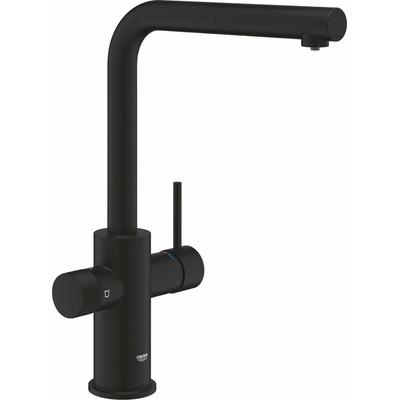Páková kuchyňská baterie s filtrační funkcí a vytahovacím perlátorem barva: phantom black jednootvorová montáž výpusť ve tvaru L s výsuvnou koncovkou samostatná páka pro...