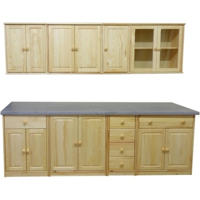 Kuchyňská linka 260cm z masivu borovice Kuchyňský set šíře 260cm je kompletně vyrobený z borovicového dřeva. Dodá vaší kuchyni jedinečný charakter a uschová veškeré nádobí a...