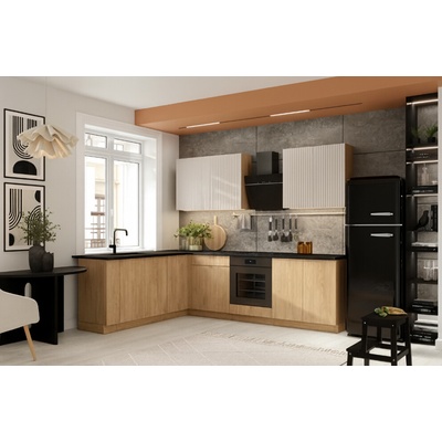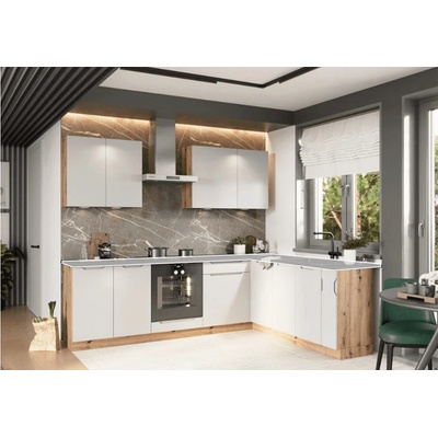 Kuchyňská linka GIANNA C | dub artisan/bílá 200-260 cm Rohová bílá kuchyňská linka GIANNA C spojuje moderní design s praktickým využitím prostoru. Ideální pro kuchyně, kde je...