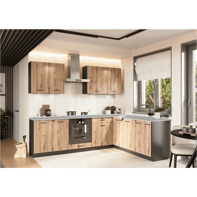 Kuchyňská linka ANIKA | 200-260 cm dub artisan/grafit Plánujete renovaci kuchyně nebo zařízení nové? Rohová kuchyňská linka ANIKA je ideální volbou, která kombinuje moderní...