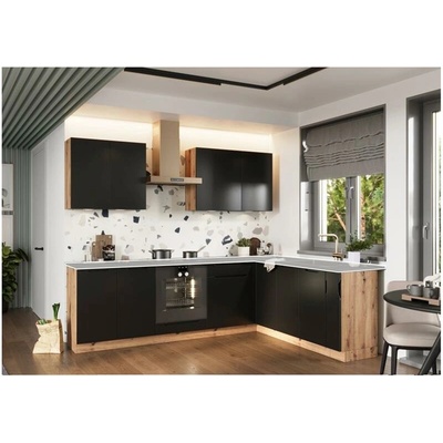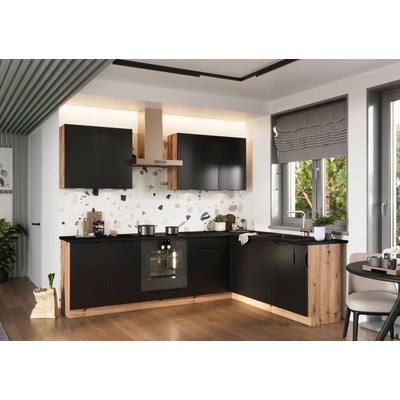 Rohová kuchyňská linka ISABEL | 200-260 cm dub artisan/černá Rohová kuchyňská linka ISABEL v barvě dub artisan v kombinaci s černou barvou je perfektní volbou pro každou...