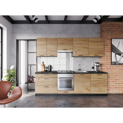 Kuchyňská linka VELLA | 260 cm dub craft zlatý Kuchyňská linka Vella v moderním provedení dub craft zlatý s černým korpusem přinese do vaší kuchyně nadčasový design. Černé...