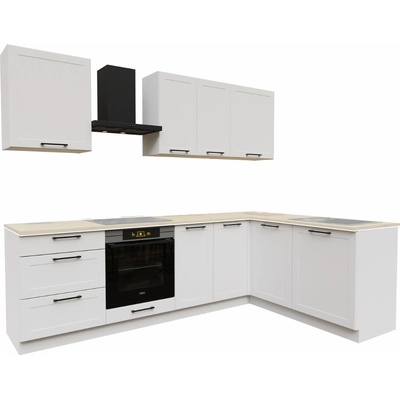 Rohová kuchyňská linka bez desky ADELE | 170-260 cm bílá Moderní rohová kuchyňská linka ADELE v elegantním bílém provedení s jemnými frézovanými dvířky přinese do vaší kuchyně...