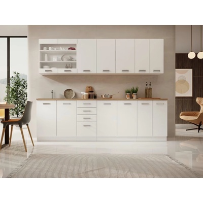 Kuchyňská linka BUBBLE | 260 cm bílá Kuchyňská linka BUBBLE | 260 bílá je praktická sestava kuchyňských skříněk sestávající z několika prostorných skříněk, díky kterým pohodlně...