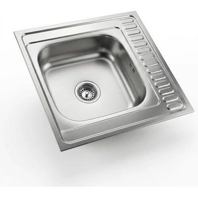 Celoplošný dřez z nerezu nahrazuje pracovní desku,rozměr 600 x 600 mm. Na skříňku 60 cm . Součástí dřezu je kompletní vtok.