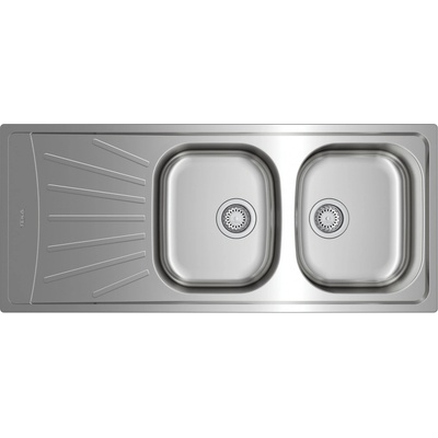 Oboustranný dřez s matnou povrchovou úpravou pro horní montáž, 80 cm Popis Nerezový dřez, dvě mísy a jeden odkapávač Povrchová úprava: matná Horní montáž, zaměnitelný...
