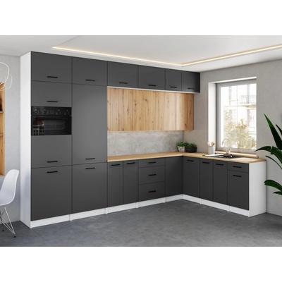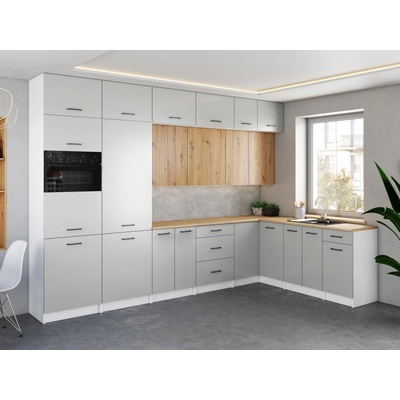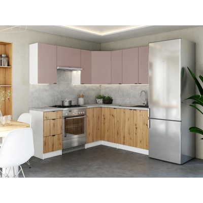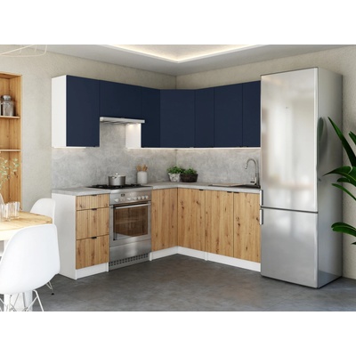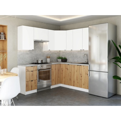 FRONTI Rohová kuchyňská linka LAMIA 190x170 cm Bílá/Dub artisan