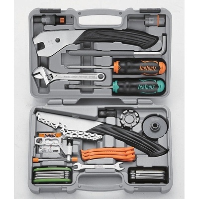 Plastový kufr ICETOOLZ s nářadím pro servis kolObsah:stahovák klikklíč na povolení matice kazetystahovák vícekolečka (drážkování Shimano)plochý klíč 15 mm na pedályimbus klíč 8...