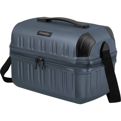 Plastový kosmetický kufr značky Travelite série Dynamic v modré denim barvě s dvoucestným zipem. Ideální parťák na cesty! Ať už potřebujete uložit kosmetiku nebo fotoaparát,...