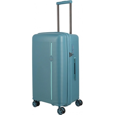 Prostorný skořepinový kufr z polypropylenu, vybavený čtyřmi kolečky a TSA zámkem.