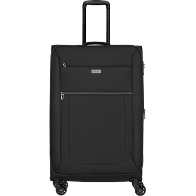 Textilní cestovní kufr na čtyřech kolečkách vybavený integrovaným TSA zámkem, expandérem a přední kapsou na zip. - lehká výsuvná rukojeť s aretací - velká přední kapsa na zip -...