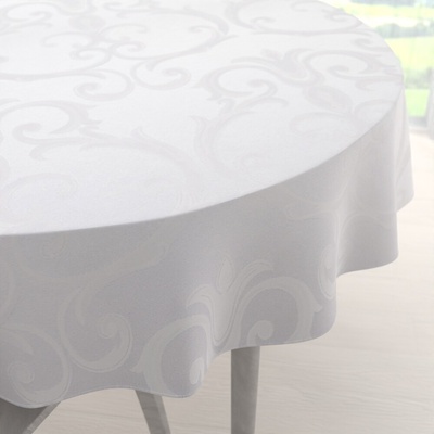 Dekorační kulatý ubrus na jídelní stůl s vytkaným zámeckým vzorem v bílé barvě. Je vyrobený z žakárově tkané oboustranné 100% polyesterové látky Monako o gramáži 170 g/m2....