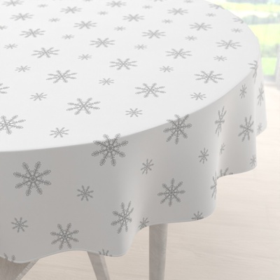 Teflonový kulatý ubrus na jídelní stůl se vzorem vánočních šedých vloček na bílém podkladu, vyrobený ze 100% polyesterové látky s vodoodpudivou a nešpinivou teflonovou úpravou....
