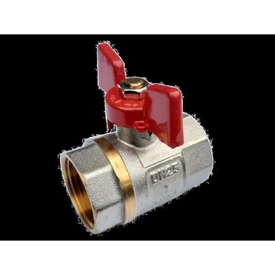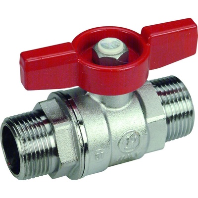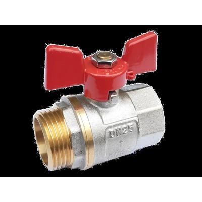 Kulový kohout s ovládací vrtulkou - červená, 2x vnější závit, chromovaný. Závity EN 10226 max. tlak 42 bar (3/8" - 3/4") max. tlak 35 bar (1" - 1" 1/4) max. teplota 185...
