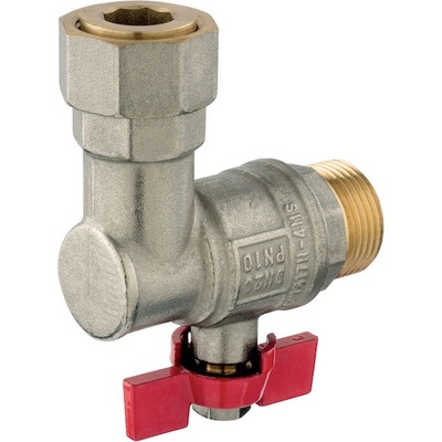 Kulový kohout s vnitřním a vnějším závitem, ovládání páčkou.Tělo, závitová část a koule z mosazi MS 58, ovládací páčka v červené barvě. Utěsnění hřídele pomocí ucpávky. Určeno...