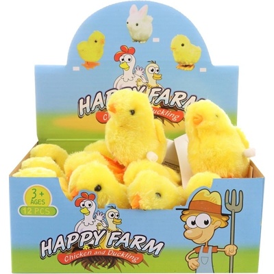 Skákací kuřátko. Po natažení kuřátko skáče. Rozměry: 9 x 8 x 6 cm Materiál: plast / plyš Natažení mechanicky