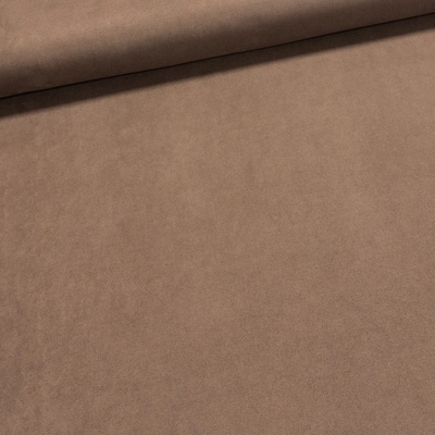 Velice příjemný silnější úplet zvaný scuba v hnědé barvě se vzhledem broušené kůže. Hladká a splývavá látka je vhodná na jarní a podzimní bundy, saka, kalhoty i sukně.