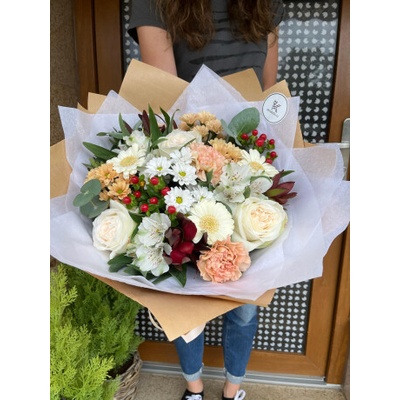 Naše nová prémiová kytice v pastelových barvách. V kytici kombinujeme pastelové barvy s eucalyptem. Kytice je kombinací celoročně dostupných květin jako je růže, eustoma,...