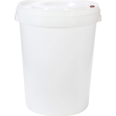 Kvasná nádoba s víkem - objem 60 litrů Kvasná nádoba má pevné víko a po uzavření je zcela hermetická. Je vyrobena z potravinářského plastu a je tolerantní vůči alkoholu. Ve víku nádoby naleznete také otvor s těsněním, určený k umístění kvasné zátky. Nádoba má držadlo...
