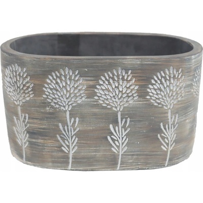 Obal na květiny ovál. Rozměry: 20,5 x 11,5 x 11 cm. Materiál: beton / cement. Barva: šedá, bílá. Výrobek může propouštět vodu a není mrazuvzdorný.