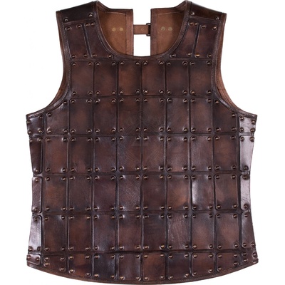 Středověká brigantina, kožený kyrys, velikost M a L Kožená brigantina se na zádové části zapíná na pět kožených pásků s mosaznými přezkami. Tyto přezkové popruhy, bezpečně...