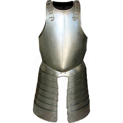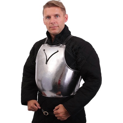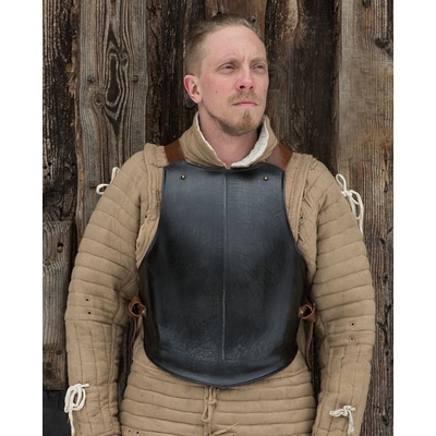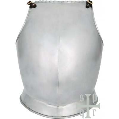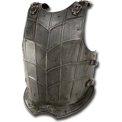 Kvalitní černěný přední kyrys je vyroben z 1 mm silného plechu. Plně ochrání hruď a břicho. Pomocí dvou řemenů z prvotřídní kůže drží kyrys na místě i během pohybu a bitvy....