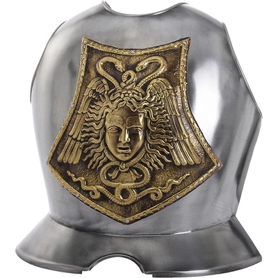 Kyrys s tepanou Gorgonou Medúzou Upozornění: Toto je pouze dekorativní předmět, nevhodný k reálnému použití! Celková výška cca 415mm Přes hrudník cca 695mm Průměr u krku cca...