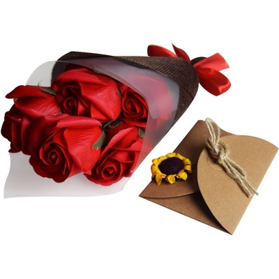 Kytice z mýdla - červená věčná růže mýdlová - tento romantický černý dárkový box obsahuje kytici 7 mýdlových růží.