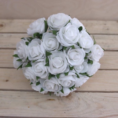 Dekorační kytice růží. Rozměry: 19 x 19 x 22 cm. Materiál: textil, plast. Barva: bílá.