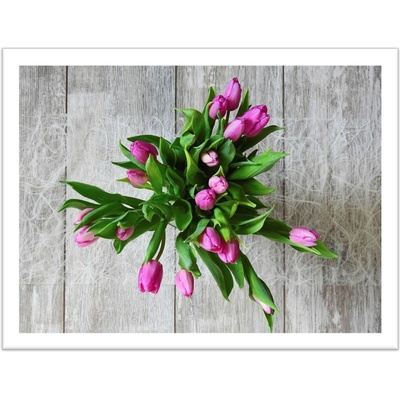 Obraz zachycuje kytici tulipánů na dřevěném pozadí. Skvěle se hodí jako dekorace do vašeho bytu, nebo domu například do obýváku, či ložnice, také například do kavárny nebo do...