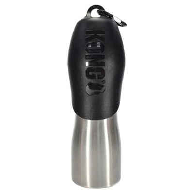 Cestovní nerezová láhev na vodu pro psa Kong spolu s netoxickým plastovým uzávěrem sloužícím také jako miska a objemem 740 ml. Ideální na procházky v přírodě. Nerezová láhev...