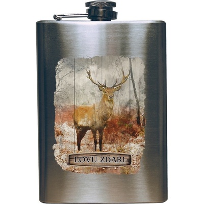 Nerezová placatka na alkohol 200ml s mysliov potiskem v dárkové krabičce. Nerezová placatka na alkohol s potiskem, který potěší každého myslivce. Objem kovové placatky je 200...